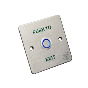 Кнопка виходу, врізна, NO / NC / COM, нержавіюча, макс. напруга і струм комутації 36V / 3А, 86х86х31мм, світлодіодне підсвічування кнопки виходу. До кнопки виходу підходить монтажна коробка: MBB-811C-M.