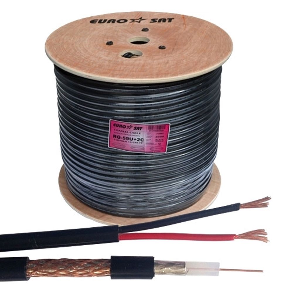Кабель коаксіальний RG-59-CU+2x0,75 PE EUROSAT, зовнішній комбінований, бухта 305 м