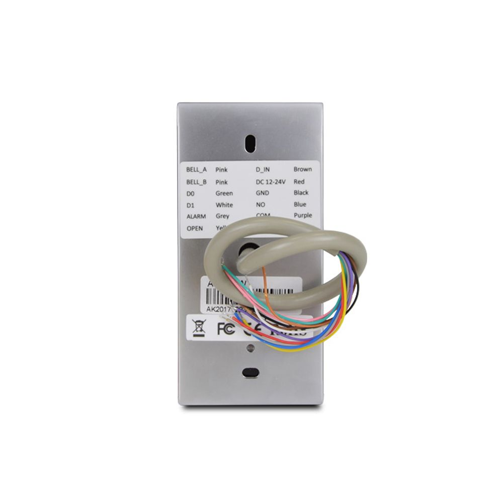 Антивандальна кодова клавіатура з підтримкою Tuya Smart, вбудований зчитувач Proximity, 2000 кодів і карток, відстань зчитування карток до 6 см, імпульсний режими роботи, металевий корпус, ступінь захисту: IP68, робоча напруга DC 12V/0.03A, вихід реле (NO, COM, NC), дзвінок, кнопка виходу, сирена, інтерфейс Wiegand 26, датчик стану дверей