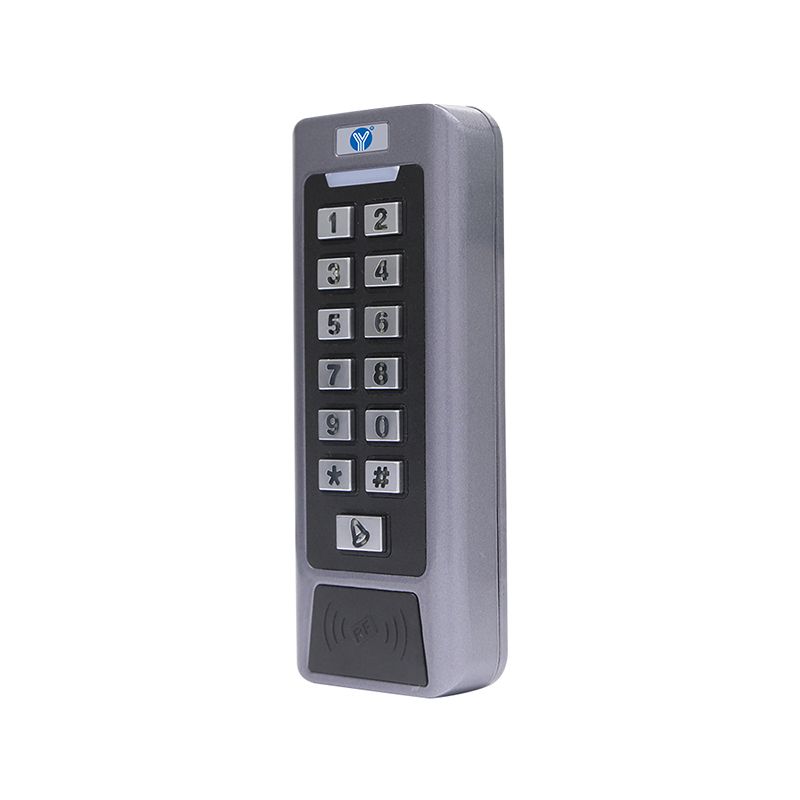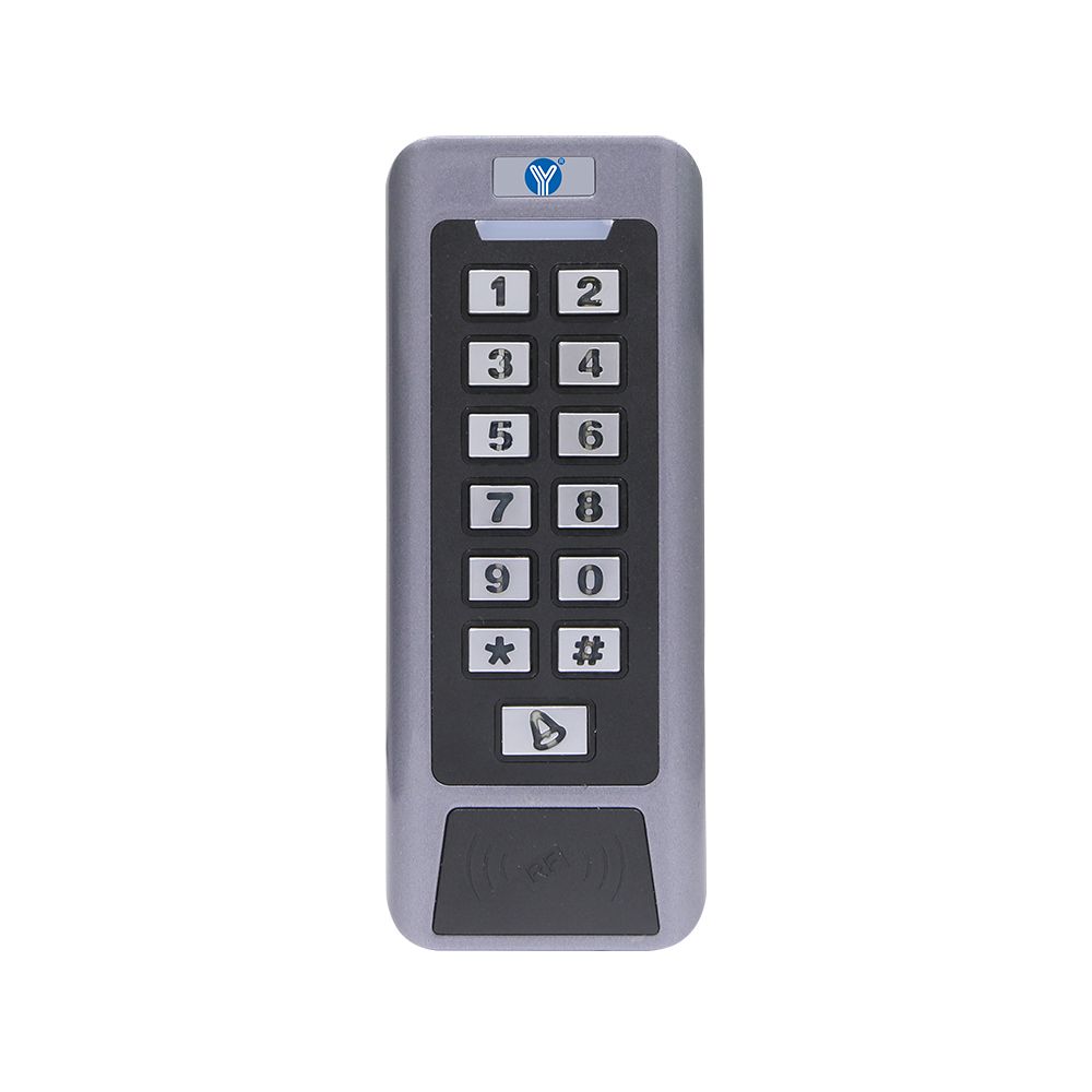 Кодова клавіатура, вбудований зчитувач проксіміті карт і брелків, 2000. кодів і карт, режими роботи: імпульсний, утримання; 2 реле; корпус, захищений від вологи, нержавіюча сталь, 12VDC.