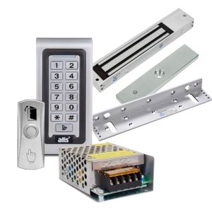 У комплект контролю доступу входить: антивандальна кодова клавіатура вологозахищена ATIS AK-601W зі ступенем захисту IP68 з вбудованим зчитувачем Proximity і пам'яттю на 2000 кодів і карт; електромагнітний замок Yli Electronic YM-280N з силою утримання до 280 кг на розрив; куточок Yli Electronic MBK-280NL монтажний; кнопка виходу Yli Electronic PBK-815 з монтажною коробкою, блок живлення Full Energy BGM-123Pro 12 В / 3 А