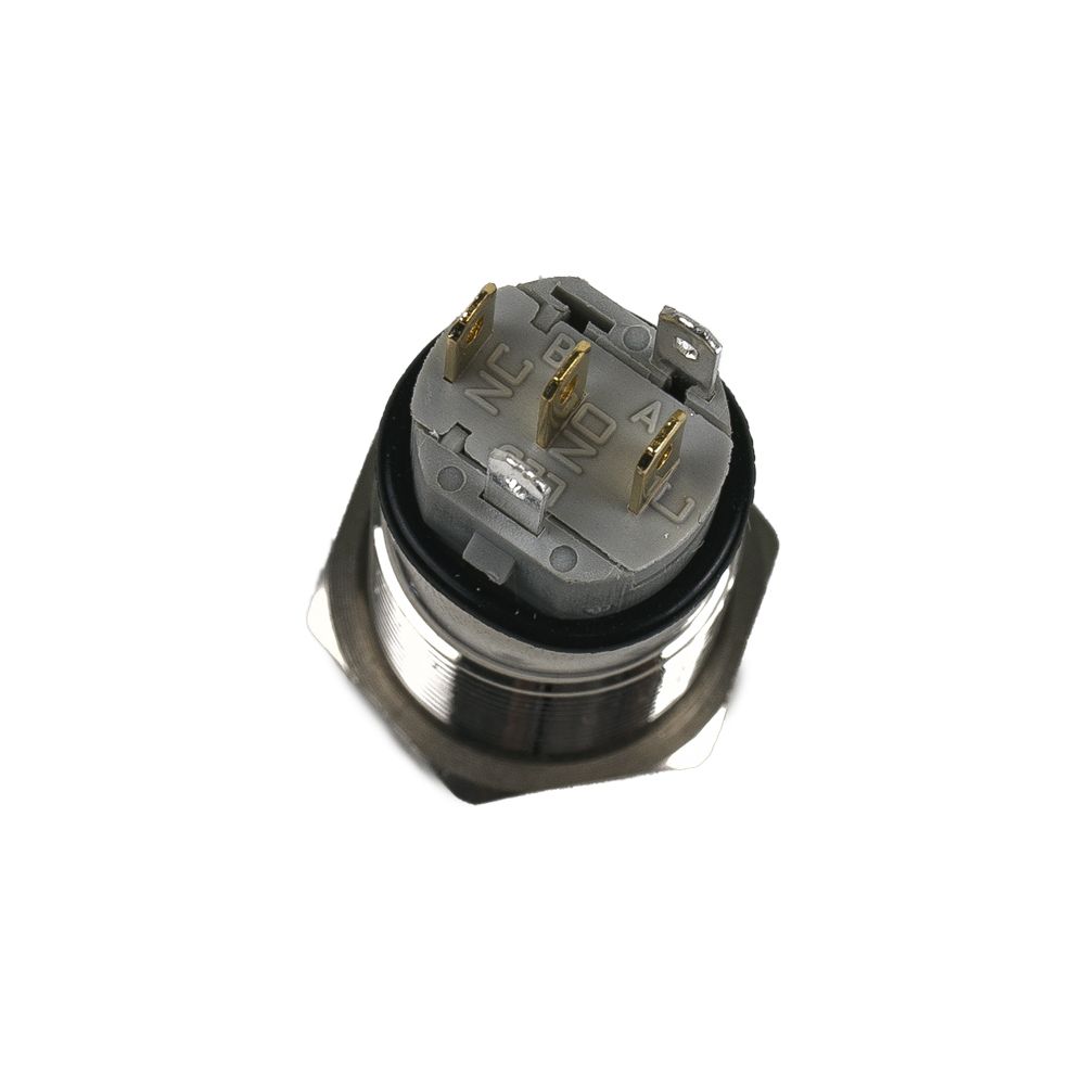 Кнопка антивандальна LB19A-P11Z/E+DYG9-24V/N з діаметром монтажного отвору 19.2 мм з плоскою формою і підсвічуванням червоного кільця (9…24В). Надійна і стійка до навантажень: ступінь захисту IP65, ударостійкість IK10. Контакти типу 1NO1NC, алгоритм роботи OFF-(ON) без фіксації. Корпуси з монооксиду алюмінію. Електричне навантаження до 3А при 250В AC, максимальний струм - 5А. Механічний ресурс до 300 000 циклів, діапазон температур - від -30°C до +80°C. Використовується в системах автоматизації, терміналах і панелях керування.