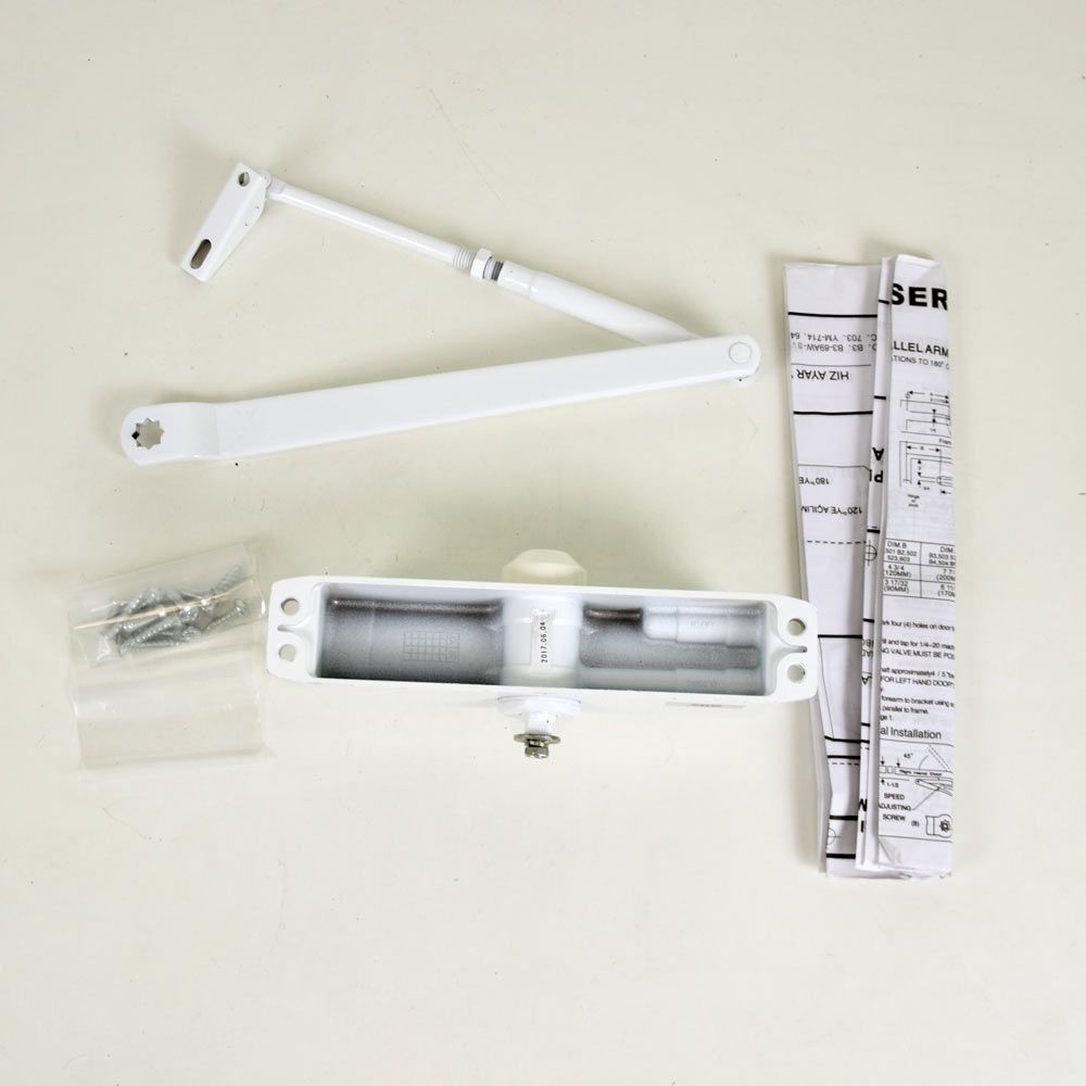Стан обладнання: знятий з вітрини, подряпини. ATIS DC-604 White дотягувач верхнього монтажу з важільною передачею. Напівкомерційне використання, напрацювання на відмову 500000 циклів. Зусилля зачинення DIN4 (вага дверей до 80 кг, ширина до 1100мм). Колір білий.