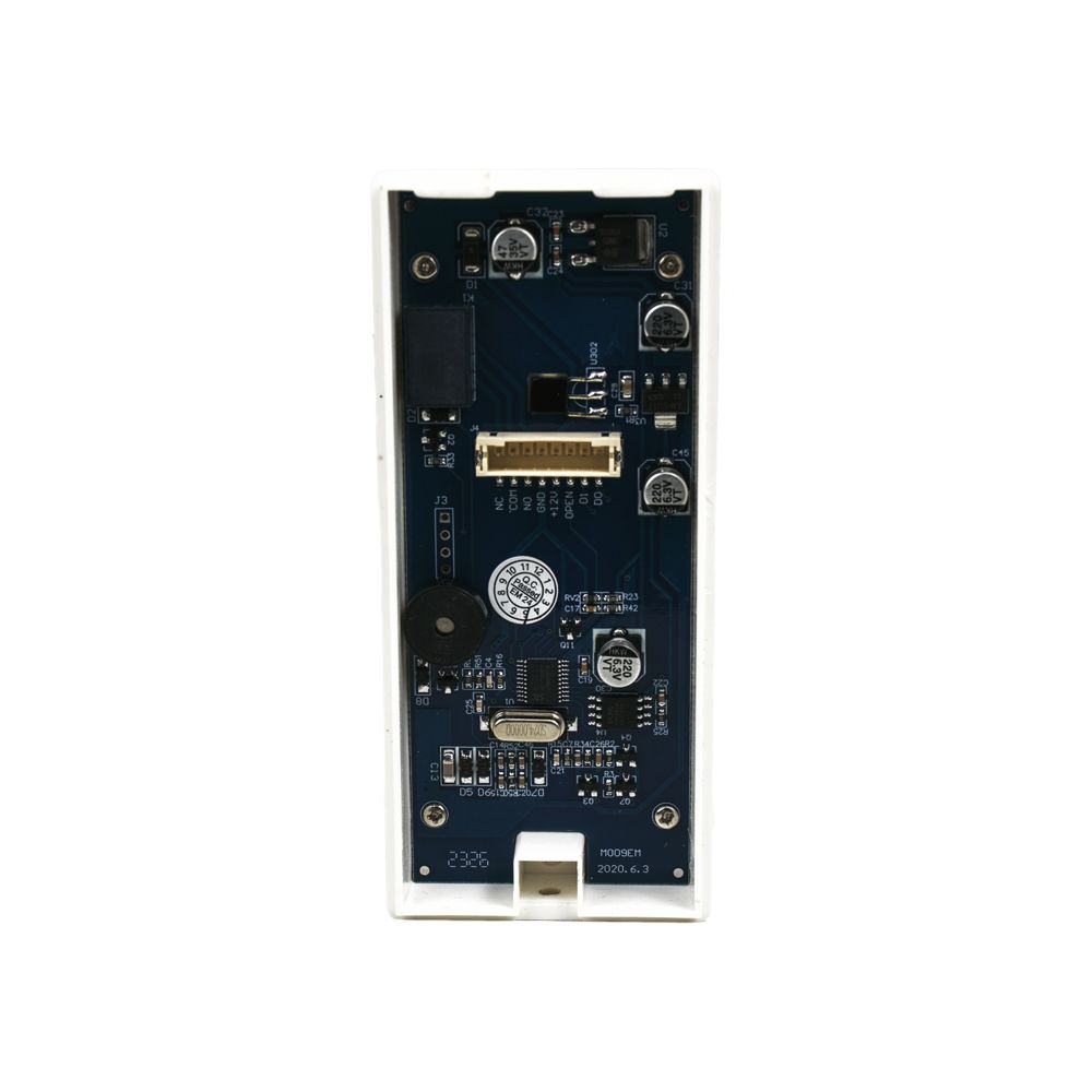Контролер з вбудованим зчитувачем карт і брелоків стандарту: Em-Marine 125кГц; 10000 користувачів; Живлення 9-15В; Споживання 50мА; IP54; Температура -20 до +50°C; Розміри 105х45х15мм. Колір білий
