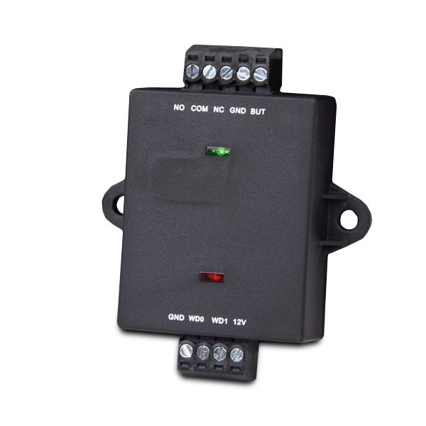 Модуль-реле для керування 1 дверима. Сумісність: термінали і контролери ZKTeco з підтримкою Wiegand. Інтерфейс зв'язку: шифрований Wiegand. Живлення: DC 12В 60мА. Розміри 50х40х17 мм