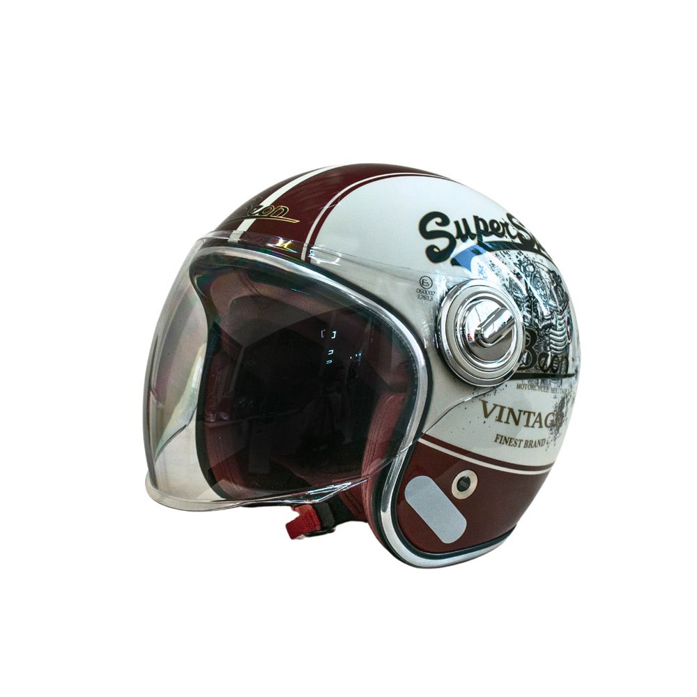 Мотошолом 3/4 в стилі ретро. Тип: відкритий. Матеріал: ABS. Висувний тонований внутрішній візор. Знімна підкладка. Розмір: XXL. Сертифікація: DOT FMVSS 218, ECE 22.05