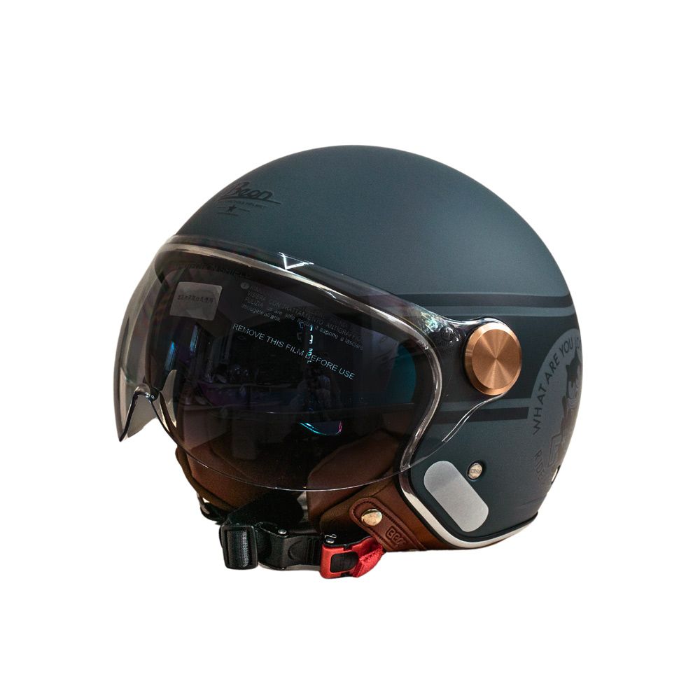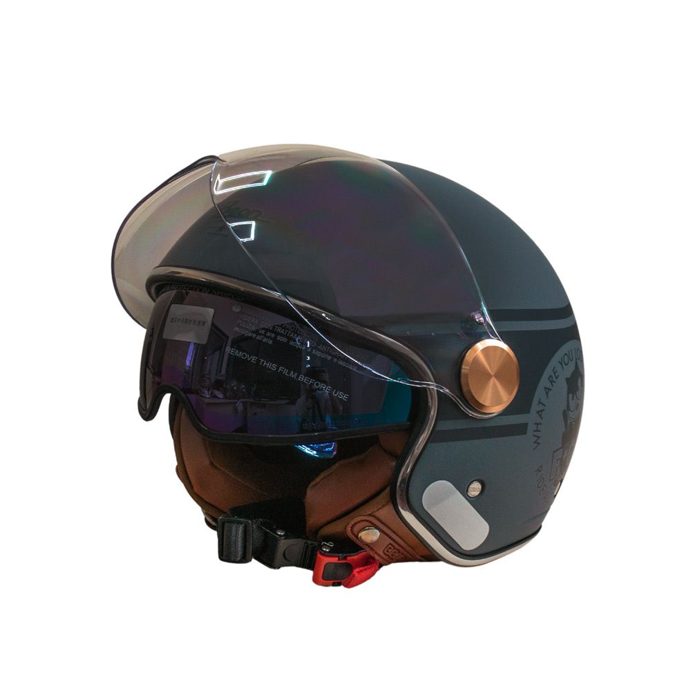 Мотошолом 3/4 в стилі ретро. Тип: відкритий. Матеріал: ABS. Подвійний візор. Висувний тонований внутрішній візор. Знімна підкладка. Колір: сірий. Розмір: L. Сертифікація: DOT FMVSS 218, ECE 22.05