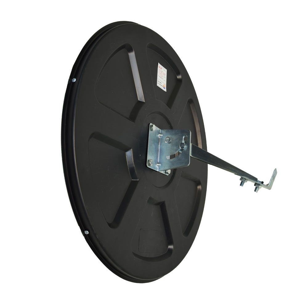 Внутрішнє сферичне дзеркало діаметром 450 мм з радіусом кривизни R2200. Дзеркальна поверхня з акрилу, задня частина з ABS пластику і HDPE. Чорний корпус і оцинковане кріплення з регульованим кронштейном. Застосовується на складах, у торгових центрах і виробничих приміщеннях.