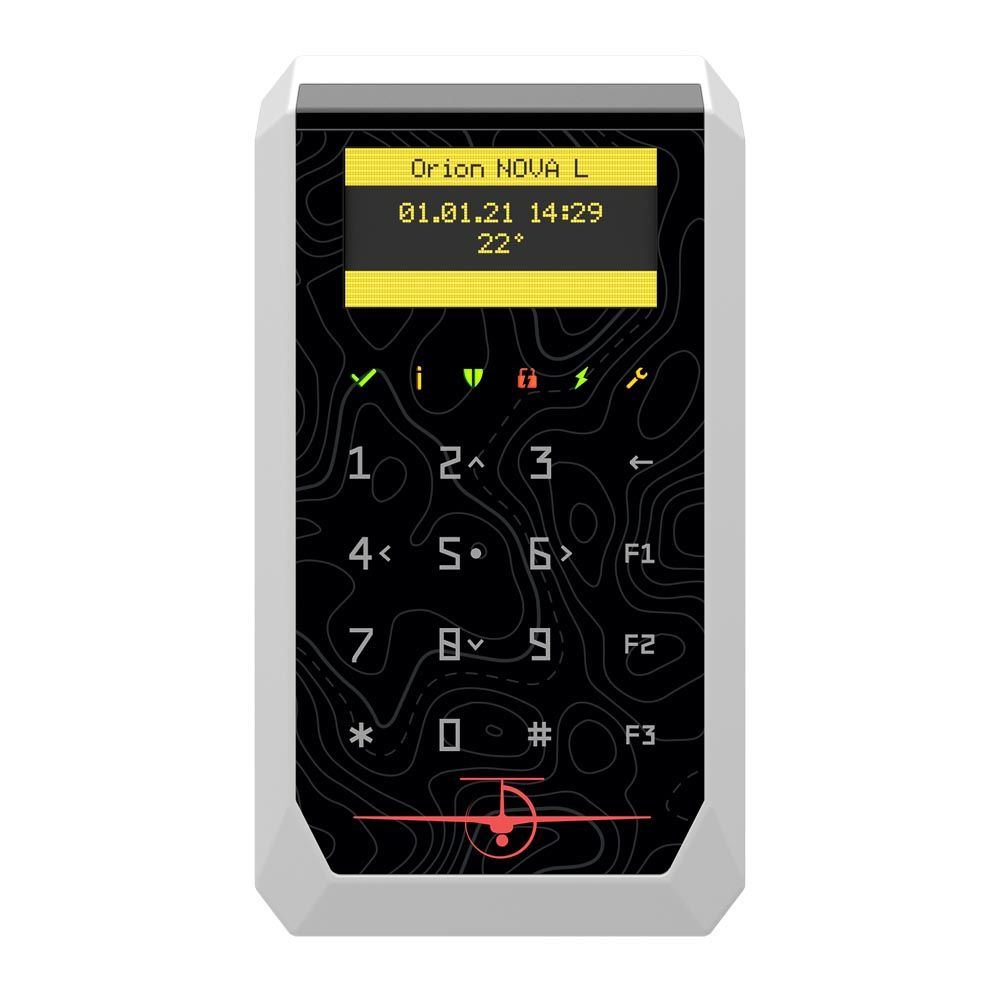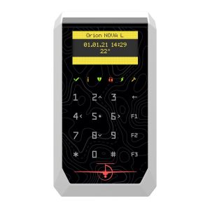 Дротова сенсорна клавіатура з контрастним OLED-дисплеєм для керування охоронними системами Orion NOVA від українського виробника TIRAS Technologies. Призначена для постановки/зняття з охорони, перегляду стану та налаштування системи. Має вбудований зчитувач NFC/Mifare; банківський рівень захисту GRADE 3; підключається через RS-485 з криптозахищеним обміном; зовнішнє живлення 12В; колір білий. Гарантія 36 місяців.