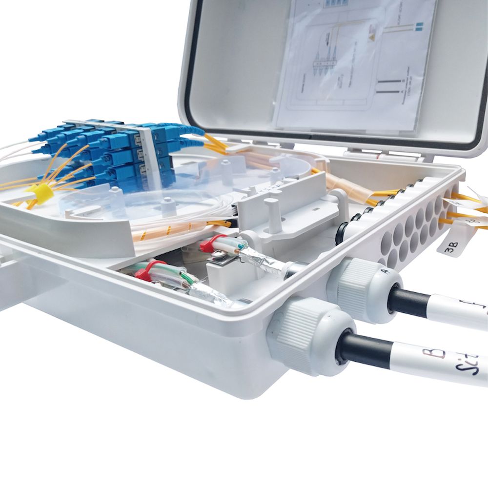 Кількість входів лінійного кабелю: 2. Максимальний діаметр лінійного кабелю: 13 мм. Кількість виводів абонентського кабелю: 16. Максимальний діаметр абонентського кабелю: Ø3 мм (патчкордовий) або 2×3 мм (FTTH). Максимальна кількість адаптерів: 16. Максимальна кількість зварок: 24