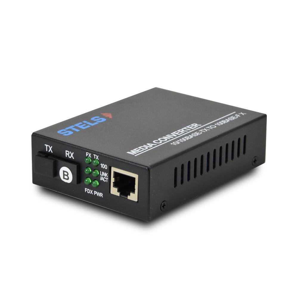 Медіаконвертер STELS-F110SB-20B-1550 для перетворення сигналу в середовищі Fast Ethernet. Забезпечує плавний перехід з 10BASE-T/100BASE-TX Fast Ethernet на кручений парі до 100BASE-FX Fast Ethernet через одномодове оптоволокно. Тип оптичного з'єднувача: SC. Тип оптики: одномодова (Singlemode). Довжина хвилі: 1550nm. Відстань: до 20 км. Автовизначення для Ethernet: 10/100 Мбіт, Full/Half Duplex. Живлення: зовнішній адаптер живлення 5В / 1A. Розміри 94 x 70 x 26 мм