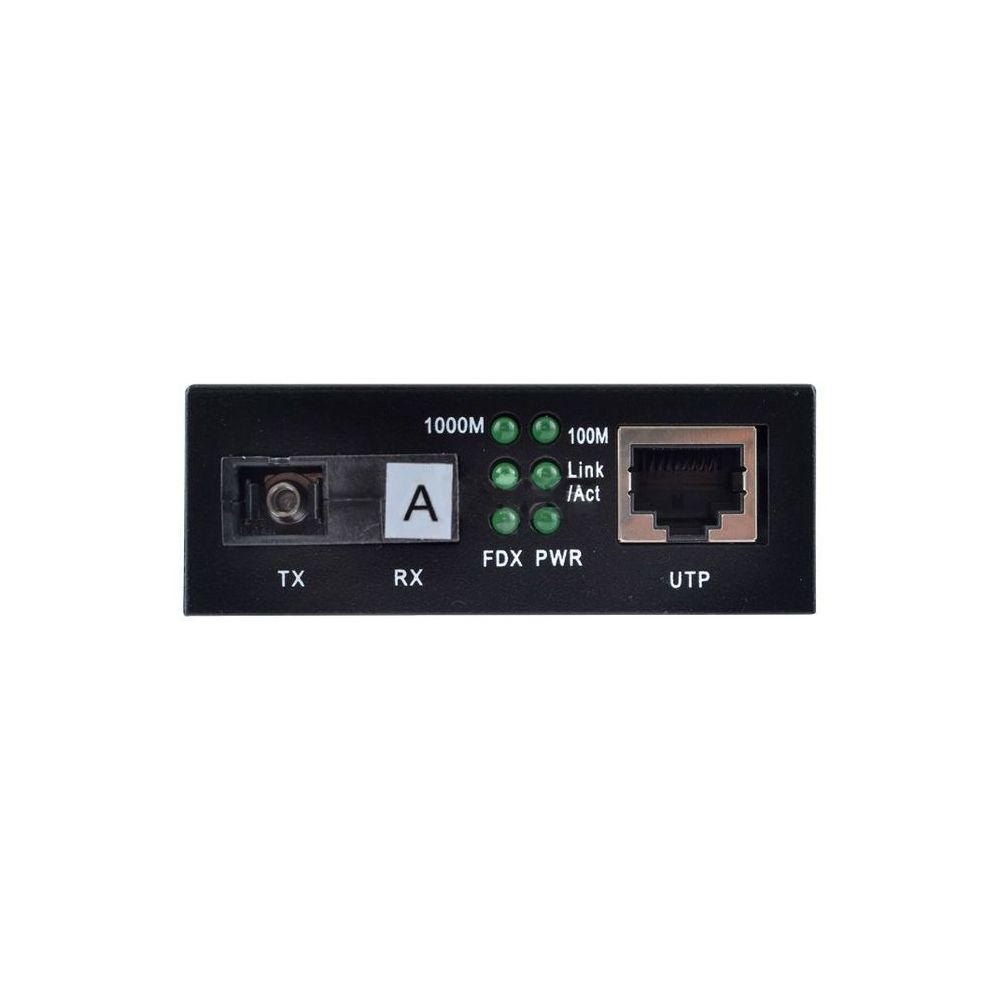 Медіаконвертер FoxGate EC-Q-1G-1SM-1310nm-20 км - некерований гігабітний медіаконвертер із вбудованим оптичним модулем 1Gb під одномодове волокно, призначений для сполучення сегментів мережі на основі мідної крученої пари і сегментів, побудованих на оптоволоконному кабелі. Тип волокна: SM (Singlemode). Довжина хвилі: 1310 нм. Робоча дистанція: 20 км. Тип конектора: SC, RJ-45. Швидкість передавання даних: 10/100 Мбіт/с, 10/100/1000 Мбіт/с. Інтерфейси: 1000Base FX, 1Gbit Ethernet, RJ-45. Дуплексний режим: напів/повний дуплекс. Кабель: Cat5, Cat6. Чипсет Qualcom 8334. MTU: 1580. Підтримка проходження тегованих пакетів (IEEE 802.1Q). Підтримка PoE: Ні. Індикатори: живлення, швидкість передавання, статус інтерфейсів. Джерело живлення: AC ~220В (~175-260В) 50Hz; DC 5V 1A