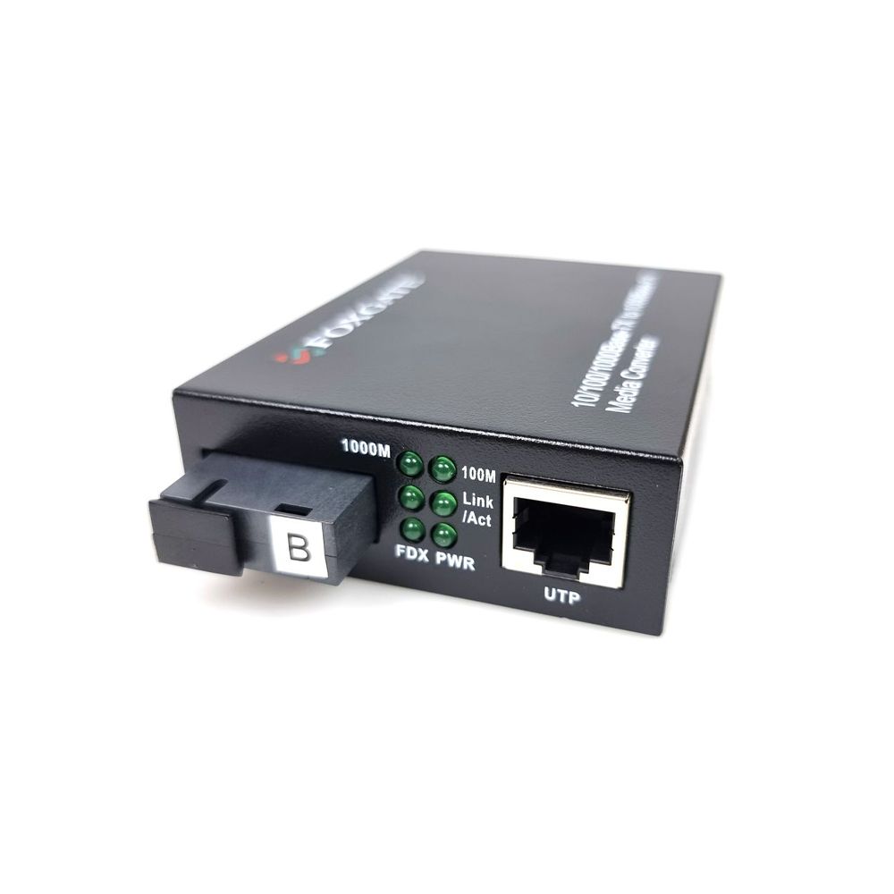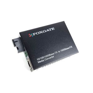 Медіаконвертер FoxGate EC-Q-1G-1SM-1550nm-20 км - некерований гігабітний медіаконвертер із вбудованим оптичним модулем 1Gb під одномодове волокно, призначений для сполучення сегментів мережі на основі мідної крученої пари і сегментів, побудованих на оптоволоконному кабелі. Тип волокна: SM (Singlemode). Довжина хвилі: 1550 нм. Робоча дистанція: 20 км. Тип конектора: SC, RJ-45. Швидкість передавання даних: 10/100 Мбіт/с, 10/100/1000 Мбіт/с. Інтерфейси: 1000Base FX, 1Gbit Ethernet, RJ-45. Дуплексний режим: напів/повний дуплекс. Кабель: Cat5, Cat6. Чипсет Qualcom 8334. MTU: 1580. Підтримка проходження тегованих пакетів (IEEE 802.1Q). Підтримка PoE: Ні. Індикатори: живлення, швидкість передавання, статус інтерфейсів. Джерело живлення: AC ~220В (~175-260В) 50Hz; DC 5V 1A