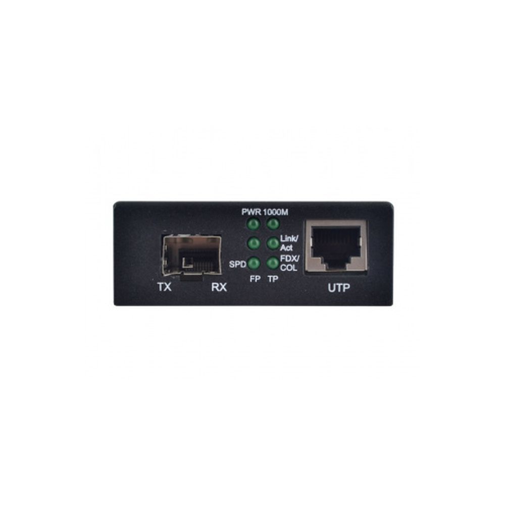 Стандарти: IEEE 802.3z/AB, 10/100/1000Base-T, 100/1000Base-FX. Звита пара UTP, FTP: Cat.5e або Cat.6 до 100 м. Наявність функції LFT (Link Fault Pass Through). Швидкість передачі даних: 1000 Мбіт/с та 100 Мбіт/с в обидві сторони. Світлодіодні індикатори: TP Act, Fdx, 100, 1000, Power, FX Act