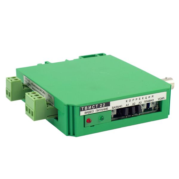 Одноканальний комплект для передачі відеосигналу по кабелю звитої пари UTP, FTP, SFTP, ТППЕП до 2200 м, вбудований грозозахист 5 кВ.
