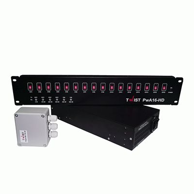 16 -канальный комплект для организации питания и передачи видеосигнала в формате D1, 960H, HD TVI, HD CVI, AHD по витой паре на расстояние до 500 м при потреблении камер до 0,5А. (250 м - до 1А), встроенная грозозащита на уровне 5 кВ. В комплект входит приемник Twist-PwA-16 HD RX, блок питания Twist-PwA-16 HD PS для 16 камер и 16 передатчиков Twist-PwA HD ТХ ІР. Также, возможно комплектовать с передатчиками Twist-PwA HD ТХ.
