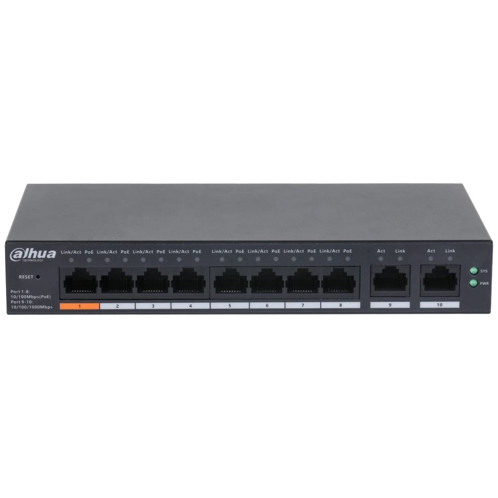 10: 8x10/100 Mbps (PoE), 2x10/100/1000 Mbps (Uplink)