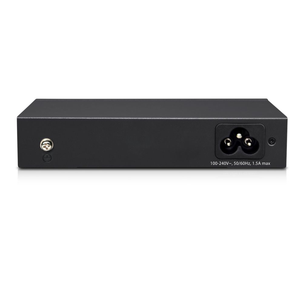 6-портовий PoE комутатор з 4 портами PoE. Downlink/Uplink порти: 4x (10/100M) з підтримкою PoE; 2x RJ45 (10/100M); Протокол PoE: 802.3af (PoE), 802.3at (PoE+), 2 режими: стандартний / відеоспостереження, захист переватаження мережі до 6кВ; AC 100-240В, споживана потужність 65Вт (включаючи PoE); робоча температура від 0° до +40°C; 140х76.7х28 мм