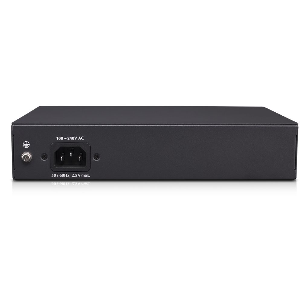 10-портовий PoE комутатор з 8 портами PoE. Downlink порти: 8x (10/100/1000M) з підтримкою PoE; Uplink порти: 2x RJ45 (10/100/1000M); Протокол PoE: 802.3af (PoE), 802.3at (PoE+), 2 режими: стандартний / відеоспостереження, захист переватаження мережі до 6кВ; AC 100-240В, споживана потужність 130Вт (включаючи PoE); робоча температура від 0° до +40°C; 220х150х44 мм