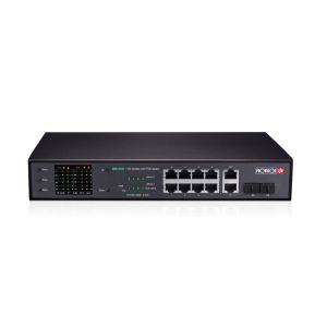 10-портовий PoE комутатор з 8 портами PoE. Downlink порти: 8x (10/100/1000M) з підтримкою PoE; Uplink/SFP порти: 2x RJ45 (10/100/1000M); Протокол PoE: 802.3af (PoE), 802.3at (PoE+), 2 режими: стандартний / відеоспостереження, захист переватаження мережі до 4кВ; AC 100-240В, споживана потужність 130Вт (включаючи PoE); робоча температура від -5° до +40°C; 280х180х44 мм