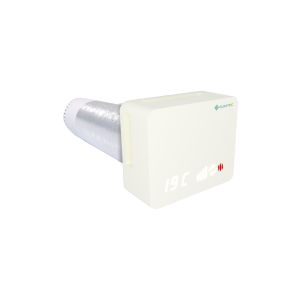 Рекуператор для вентиляції приміщення площею 25 м². Ефективність рекуперації 93%, Продуктивність 60 м³/год, Потужність 7 Вт, Рівень шуму 32 дБ, Клапан перекриття потоків: авто, Теплова потужність ТЕНу: 40Вт. Фільтр очищення повітря. Труба довжиною 410-1000 мм, діаметром 125 мм, передня панель 250х210 мм