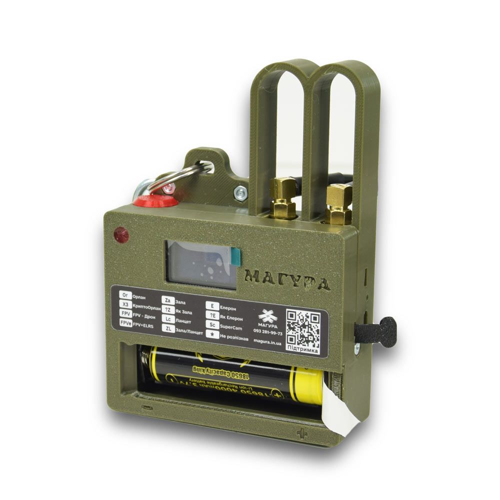 Детектор дронів «Ванільний Цукорок» з виносними антенами на магнітах – портативний пасивний пристрій для виявлення безпілотників і сигналів управління на відстані до 16 км. Одночасно сканує чотири діапазони частот: 865–885 МГц, 895–928 МГц, 970–1020 МГц і 2400–2500 МГц. Оснащений двома зовнішніми full-band антенами з магнітним кріпленням і кабелями RG-223 довжиною 2,5 м, що підвищує чутливість і стабільність прийому. При виявленні цілей подає звукове і вібраційне оповіщення, відображає тип дрона і рівень сигналу на екрані. Працює в повністю пасивному режимі, не випромінюючи сигналів і залишаючись невидимим для РЕП. Корпус розрахований на польові умови, зарядка здійснюється через USB-C, а офіційні оновлення ПЗ забезпечують стабільну роботу та актуальність пристрою.