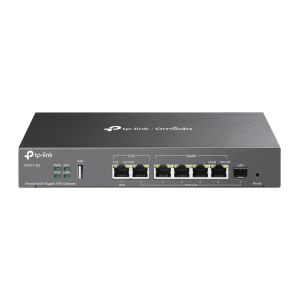 Гігабітний VPN-маршрутизатор із хмарним керуванням Omada. Порти: 1×2.5G RJ45 WAN, 1×2.5G RJ45 WAN/LAN, 1× гігабітний SFP WAN/LAN, 4× Gigabit RJ45 WAN/LAN, 1×USB 2.0. Віддалене керування; IPTV; VPN. Живлення: DC 12В/1.5А. Захист від перенапруги 4 кВ. Робоча температура: 0~40°C. Розміри: 226×131×35 мм. Установка: настільна, настінна, стійка 19"