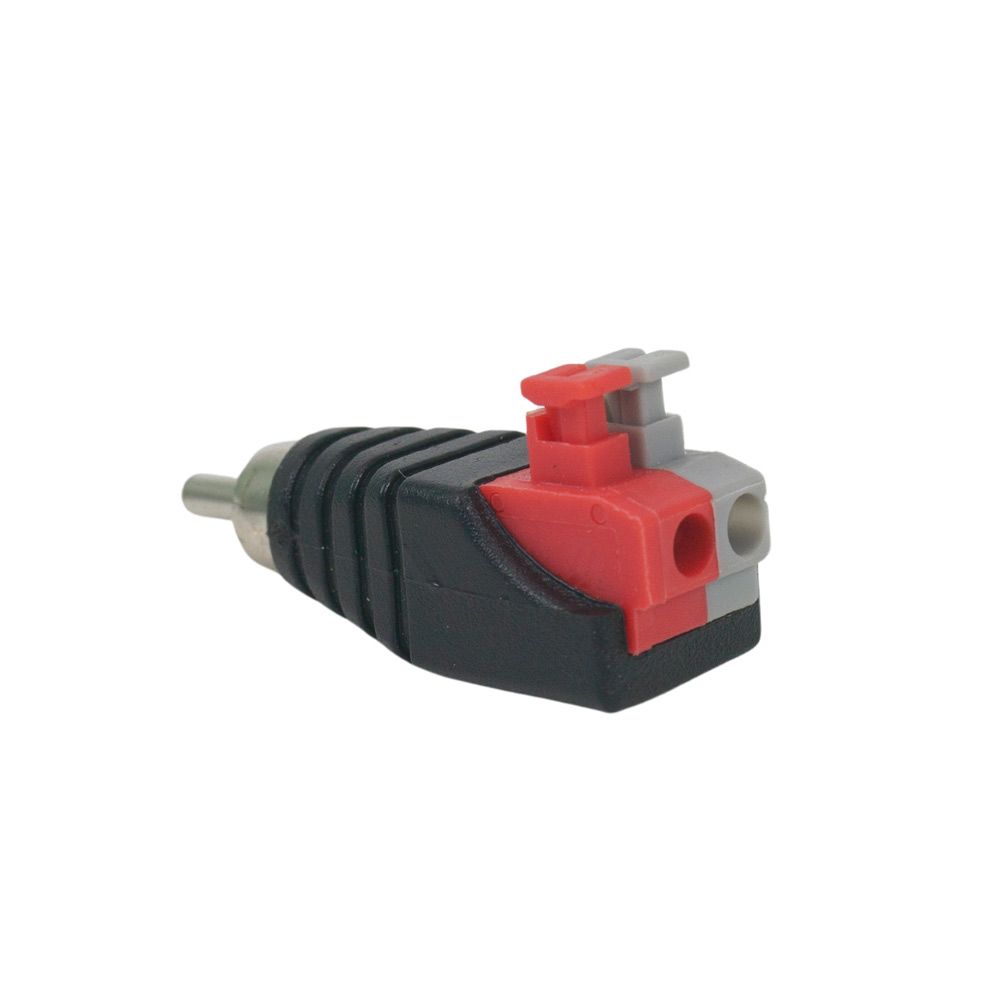 Роз'єм RCA для передачі аудіосигналу. З одного боку гніздо RCA (тато) - з іншого 2 клеми. З'єднання сухий контакт. Пластиковий корпус. Тип інтерфейсу: AV