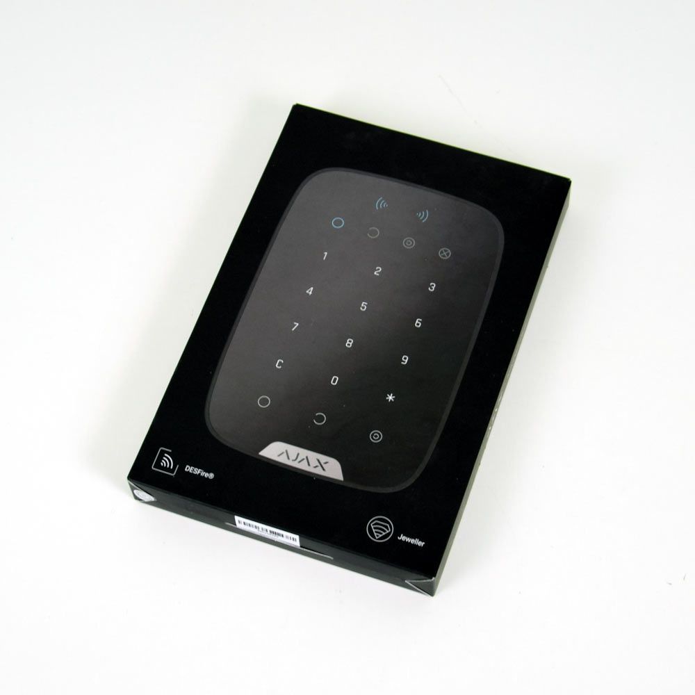 Стан обладнання: після монтажу, легкі подряпини, немає захисної плівки. Бездротова сенсорна клавіатура з підтримкою захищених безконтактних карт Pass і брелоків Tag для керування охоронною системою Ajax. Вмикання режиму охорони за допомогою карти Pass чи брелоку Tag, натисканням однією кнопкою або введенням цифрового коду . Дальність зв'язку до 1700 м (відкритий простір), 868МГц. Колір: чорний. Розміри: 165х113х20мм