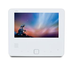 Цветной монитор с TFT экраном 7 дюймов, 2-канальный (подключение 2 вызывных панелей или 1 панели и 1 аналоговой камеры). Сенсорные кнопки. Разговор по громкой связи. Соединение с вызывной панелью 4 проводное. Питание 12-13.5V/1.5А. Корпус белого цвета. Размеры 200×170×15мм. Повна комплектація. Знято з вітрини