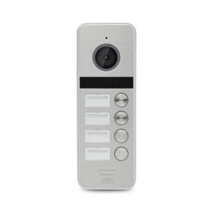 Стан обладнання: знято з вітрини, є сліди монтажу, немає коробки. Кольорова накладна відеопанель сріблястого кольору на 4 абоненти з CMOS матрицею і камерою з роздільною здатністю HD 1280x720. Кут огляду 120°. 4-х дротове підключення до домофона. Підключення всіх типів електрозамків (NO/NC). Вбудований БКЗ. Робоча температура -30..+50°С. Живлення від домофона DC12V. Розмір 132*47*18мм.