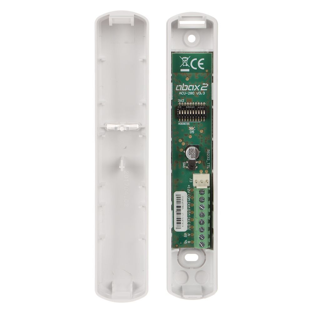 Контролер бездротової системи ABAX 2. Робота з приладами серії INTEGRA, INTEGRA Plus і VERSA. Робоча частота 868 МГц, дальність зв'язку до 1600 м на відкритому просторі. Підключення 48 бездротових пристроїв, 256 радіобрелоків APT-200, бездротових клавіатур: INT-KWRL2 - до 4 шт., VERSA-KWRL2 - до 6 шт. Живлення 12 В, споживання 60 мА. Розміри 24 x 135 x 29 мм