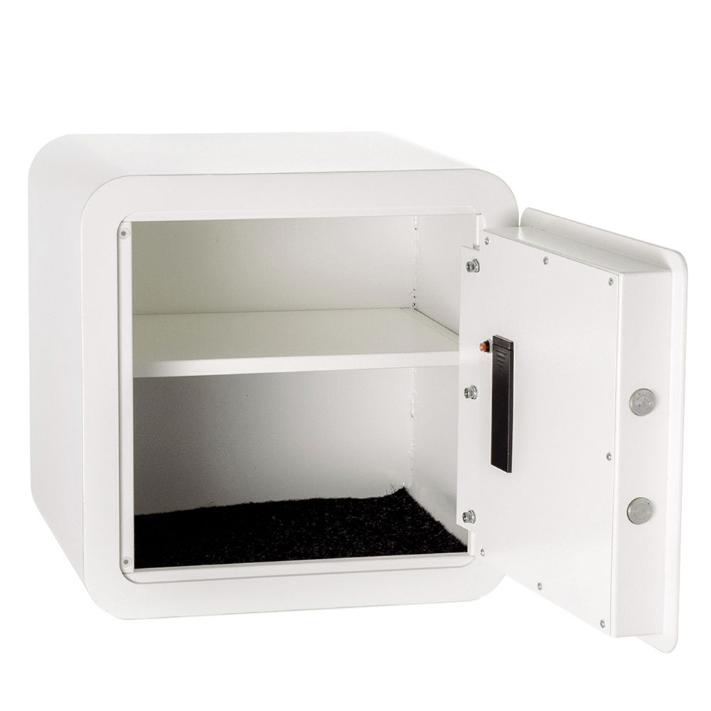 Сейф меблевий, кодовий електронний замок, чотири анкерних отвори для кріплення до стіни і підлоги, товщина металу двері 4 мм, товщина металу стінки 1.5 мм, 1 полиця, вага 19.5 кг, розміри зовнішні 400 х 400 х 360 мм, розміри внутрішні 397 x 397 x 300 мм