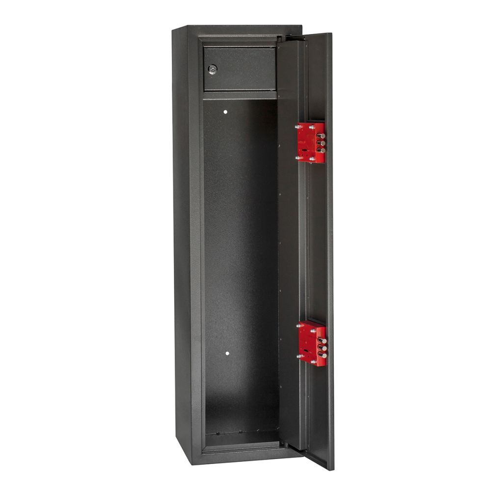 Сейф збройовий. Тип замка: Два ключові замки; Трейзер: Є; Кількість рушниць: Одне складене; Розміри 265 х 995 х 225мм; Вага: 11.5 кг