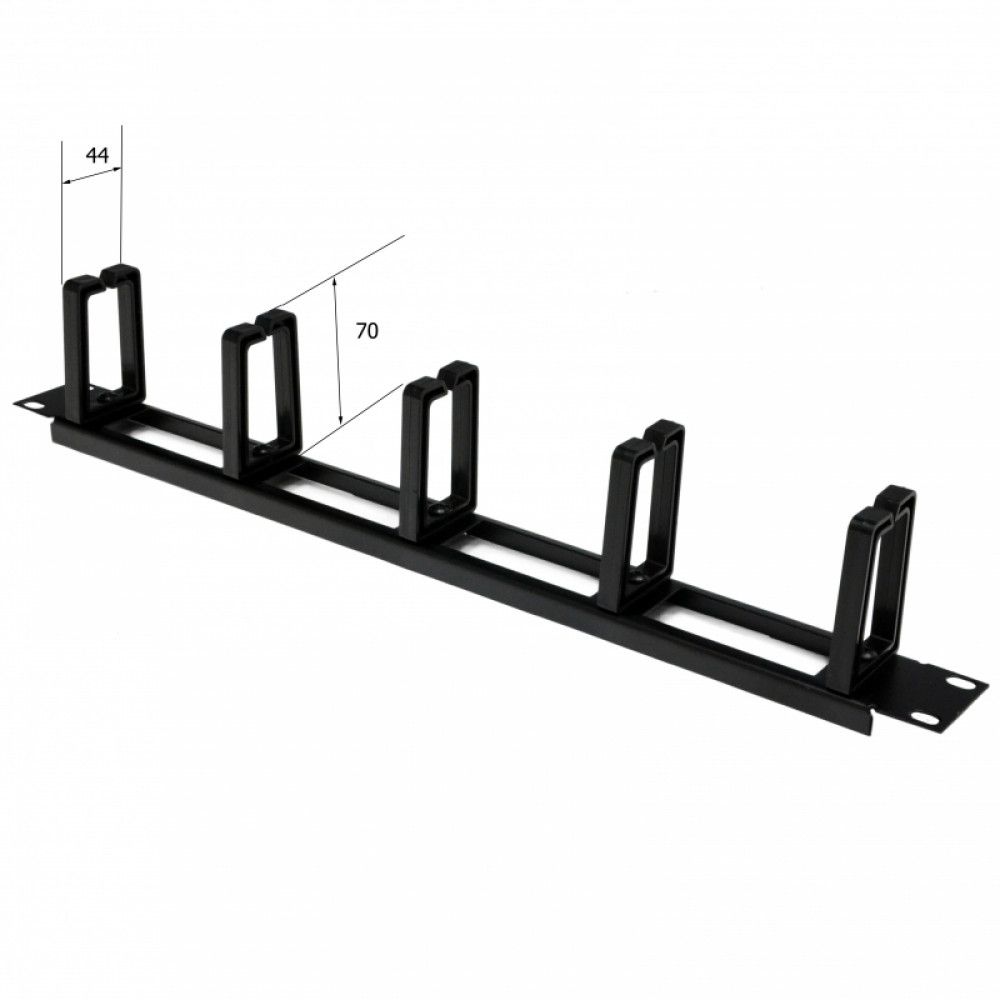 Висота монтажа: 1U. Висота: 44 мм. Глибина: 70 мм. Ширина: 480 мм. Стандарт: 19". Колір: чорний. Матеріал основи: метал. Матеріал кілець: пластик. Вага: 0.25 кг