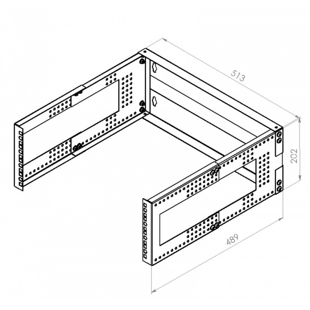 Відкритий монтажний кронштейн 19” для організації вузла комутації початкового рівня. Висота: 4U. Корисна глибина: 280 – 480 мм. Допустиме навантаження: 20 кг. Колір: чорний.