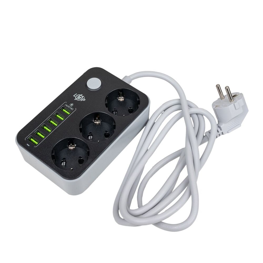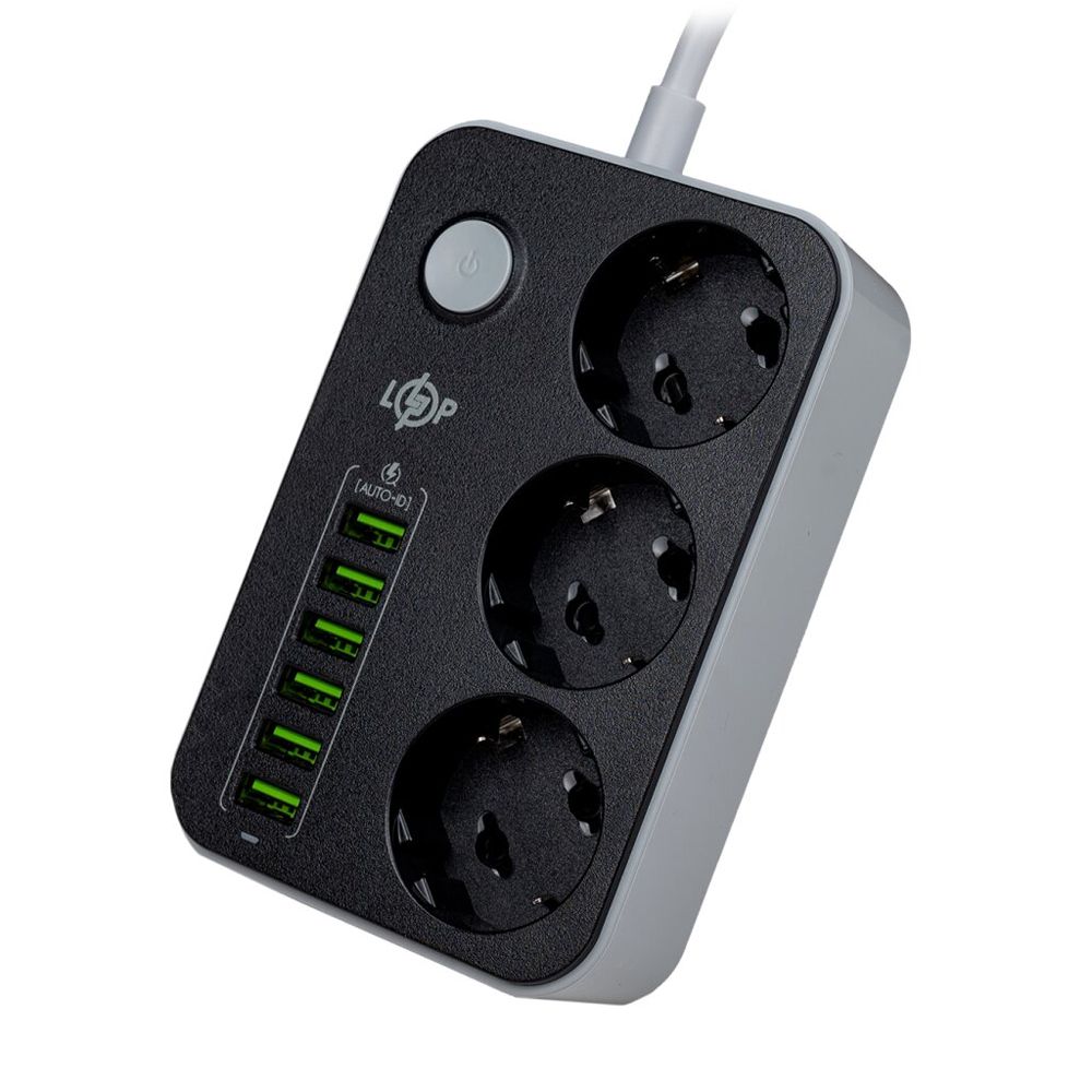 Мережевий фільтр LogicPower F24U6 оснащений 3 розетками 220В і 6 USB-портами (5В/3.4A) для одночасного під'єднання та заряджання декількох пристроїв. Підтримує навантаження до 2500Вт, забезпечуючи безпечну роботу потужного обладнання. Корпус виконаний з вогнетривкого матеріалу, що витримує температуру до 750°C. Довжина кабелю - 1.6 м, габарити - 138x90x43 мм. Оснащений кнопкою живлення для зручності керування. Мінімалістичний дизайн дає змогу гармонійно вписатися в будь-який інтер'єр.