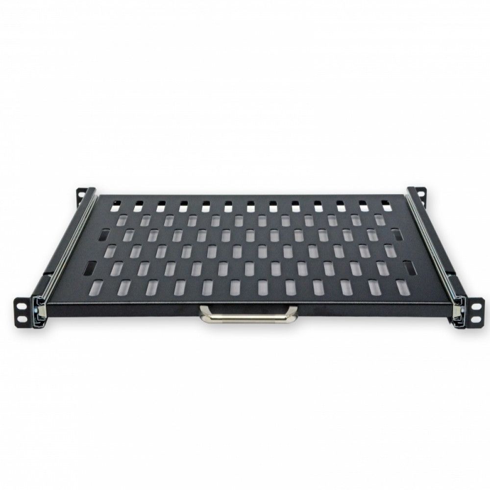 Полиця висувна. Висота монтажу: 1U. Висота: 44 мм. Глибина 400 мм. Ширина: 420 мм. Стандарт: 19". Колір: чорний, RAL 9005. Товщина металу: 2 мм. Максимальне навантаження: 30 кг. Вага: 3000 г. Розмір упаковки: 490 x 470 x 50 мм