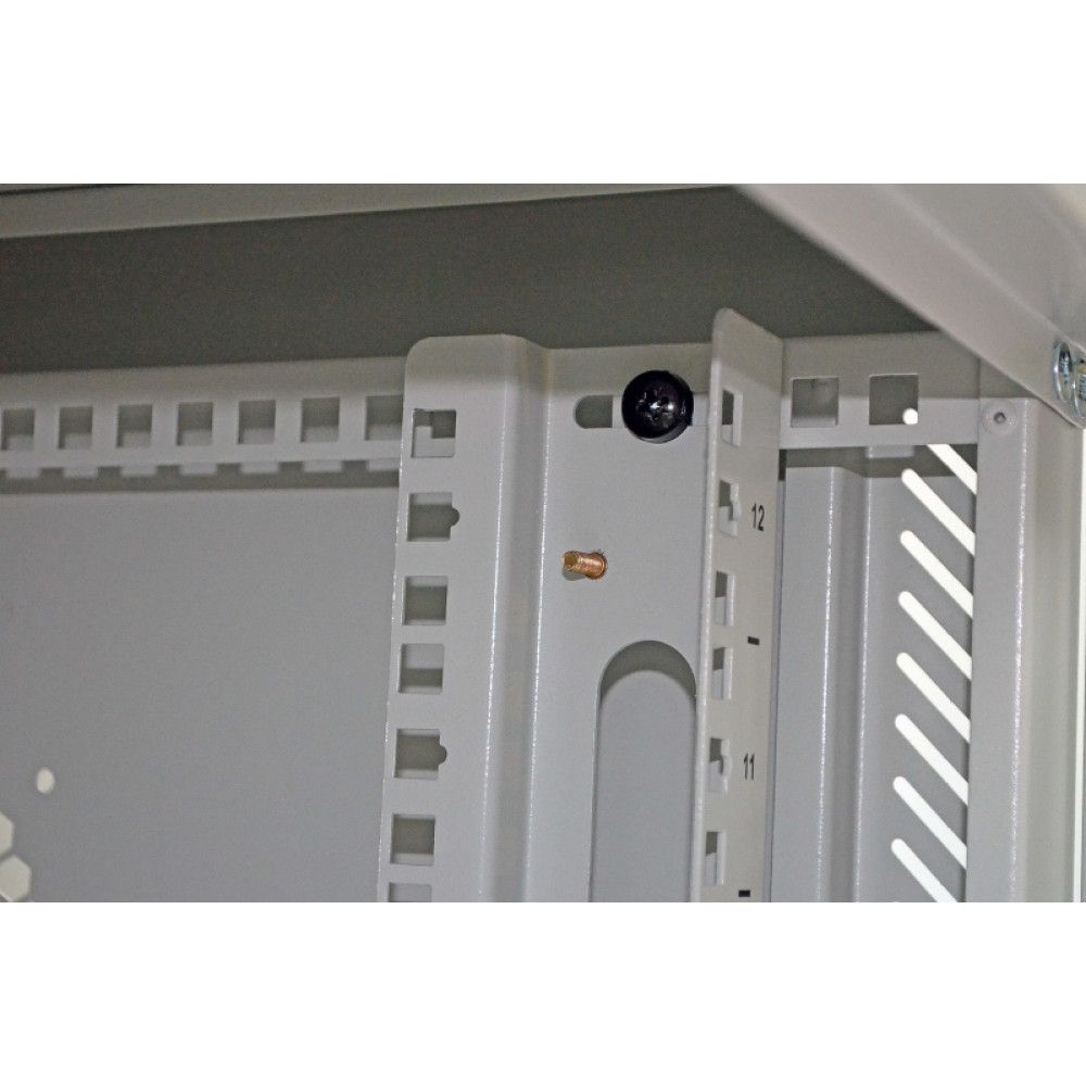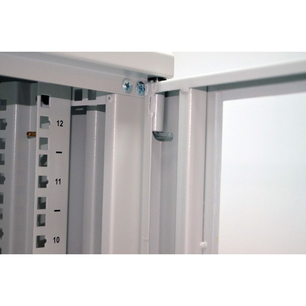 Серверна шафа для розміщення електронного та/або електротехнічного обладнання. Робоча висота: 12U. Товщина металу деталей корпусу: 1 - 1.5 мм. Максимальне навантаження: 80 кг. Стандарт: 19". Максимальна робоча глибина для встановлення обладнання: 560 мм. Колір сірий.