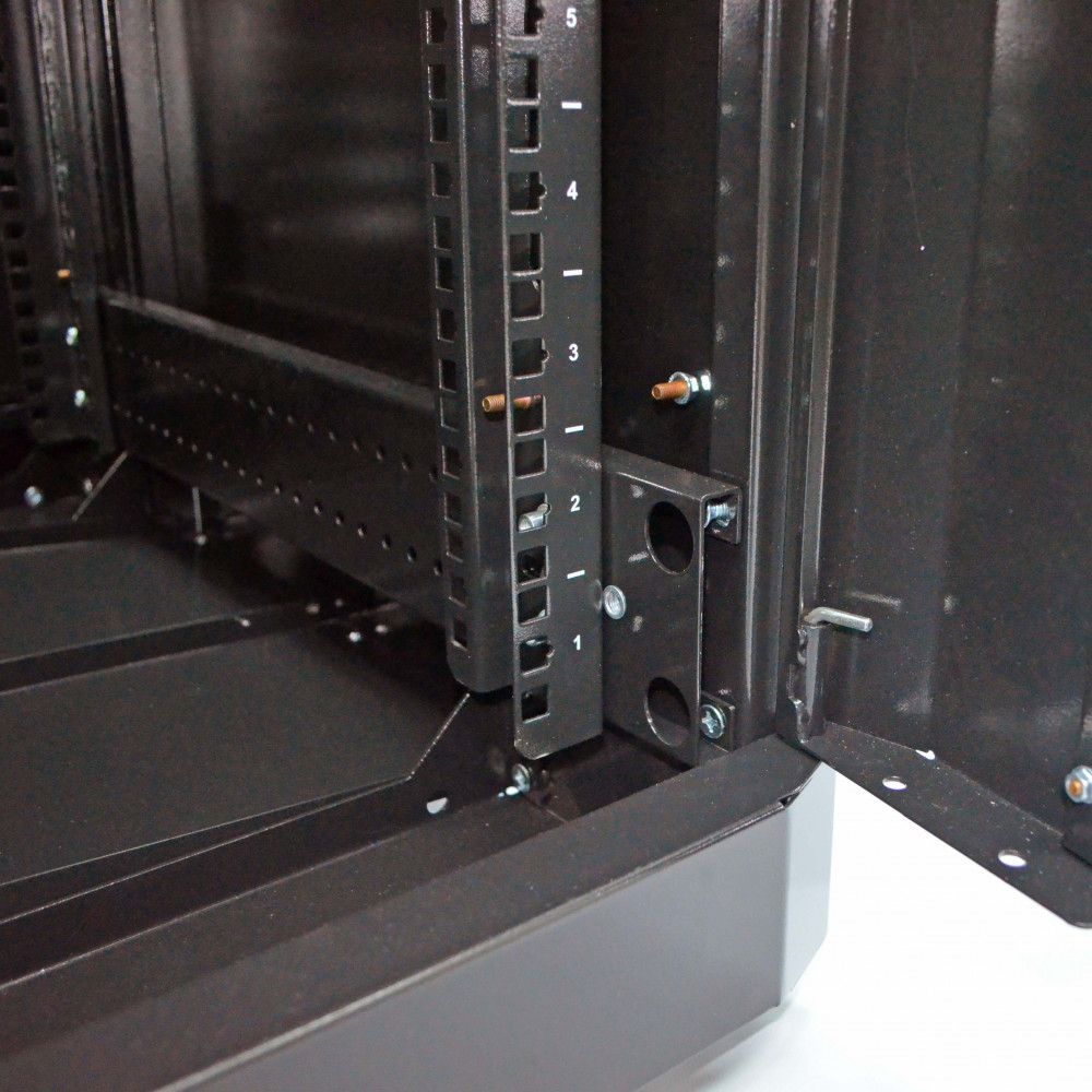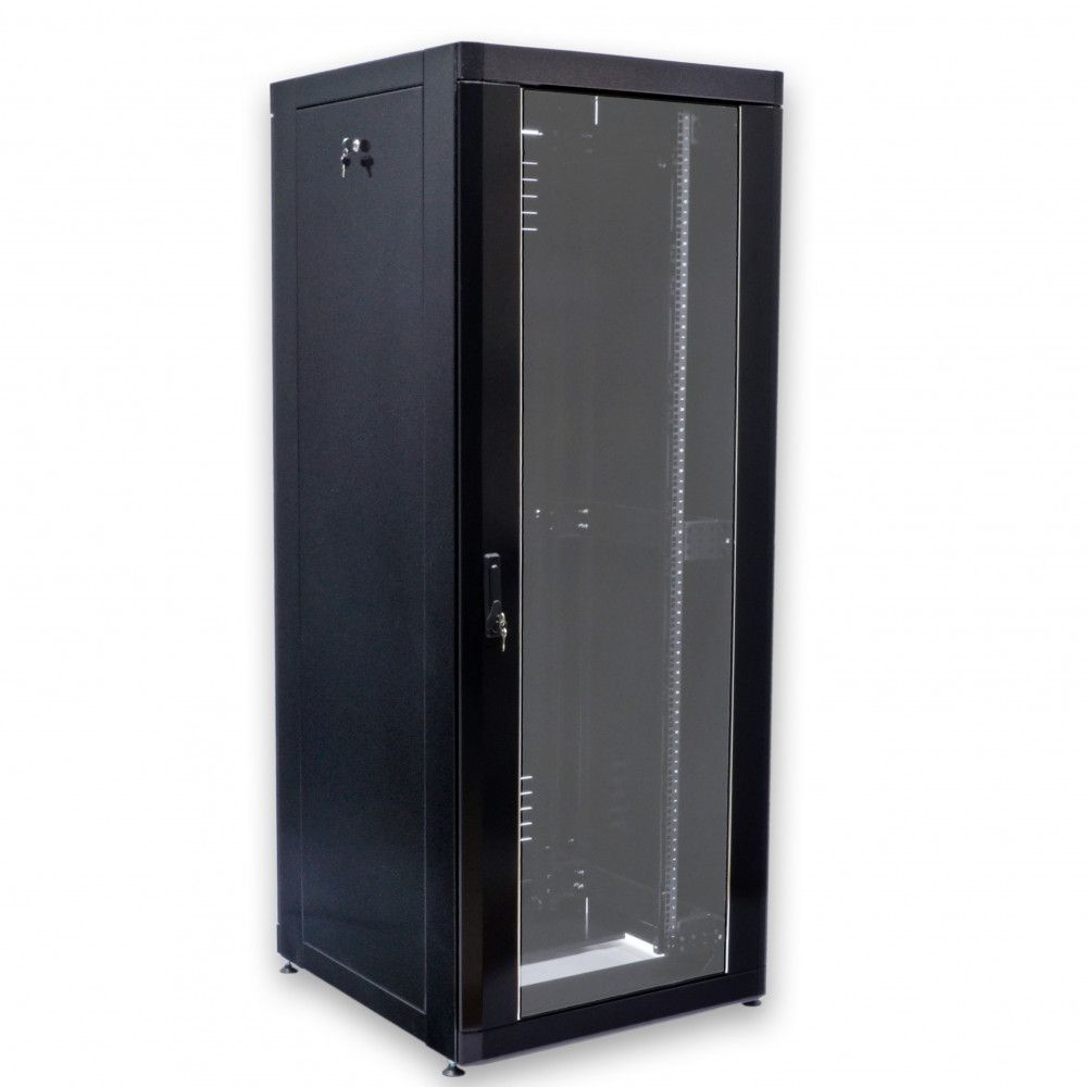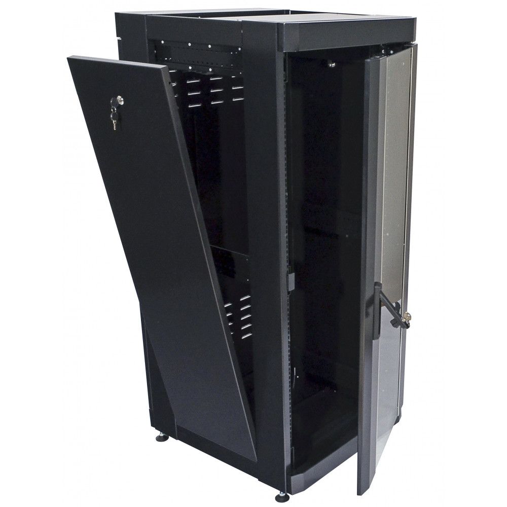 Серверна шафа для розміщення електронного та/або електротехнічного обладнання. Робоча висота: 18U. Товщина металу деталей корпусу: 1 - 2 мм. Максимальне навантаження: 450 кг. Стандарт: 19". Максимальна робоча глибина для встановлення обладнання: 675 мм. Колір чорний.