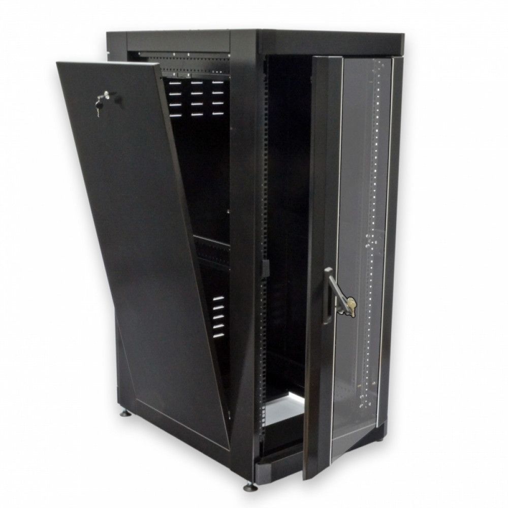 Серверна шафа для розміщення електронного та/або електротехнічного обладнання. Робоча висота: 18U. Товщина металу деталей корпусу: 1 - 2 мм. Максимальне навантаження: 450 кг. Стандарт: 19". Максимальна робоча глибина для встановлення обладнання: 865 мм. Колір чорний.
