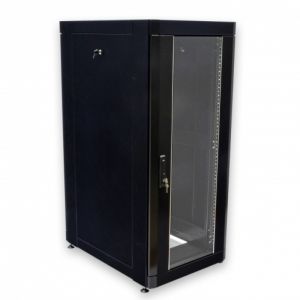 Серверна шафа посилена для розміщення електронного та/або електротехнічного обладнання. Робоча висота: 28U. Товщина металу деталей корпусу: 1 - 2 мм. Максимальне навантаження: 450 кг. Стандарт: 19". Максимальна робоча глибина для встановлення обладнання: 865 мм. Колір чорний.