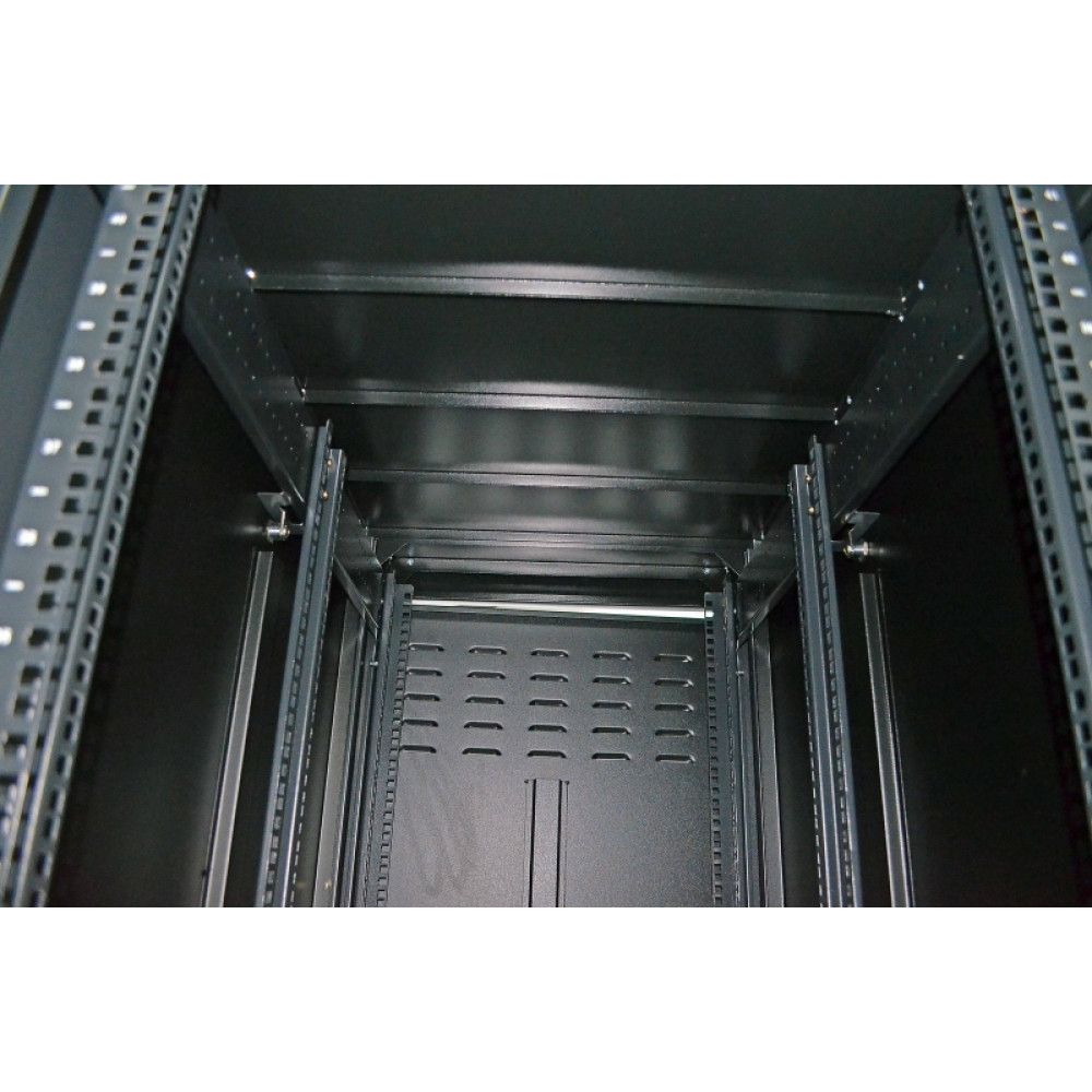 Серверна шафа посилена для розміщення електронного та/або електротехнічного обладнання. Робоча висота: 42U. Товщина металу деталей корпусу: 1 - 2 мм. Максимальне навантаження: 700 кг. Стандарт: 19". Максимальна робоча глибина для встановлення обладнання: 1055 мм. Колір чорний.