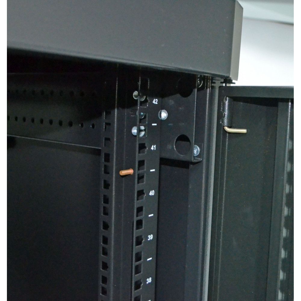 Серверна шафа посилена для розміщення електронного та/або електротехнічного обладнання. Робоча висота: 42U. Товщина металу деталей корпусу: 1 - 2 мм. Максимальне навантаження: 700 кг. Стандарт: 19". Максимальна робоча глибина для встановлення обладнання: 865 мм. Колір чорний.