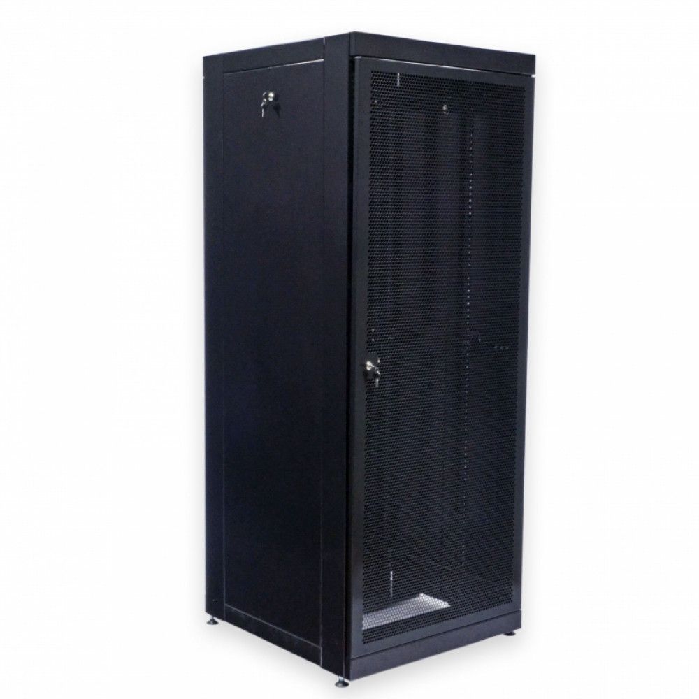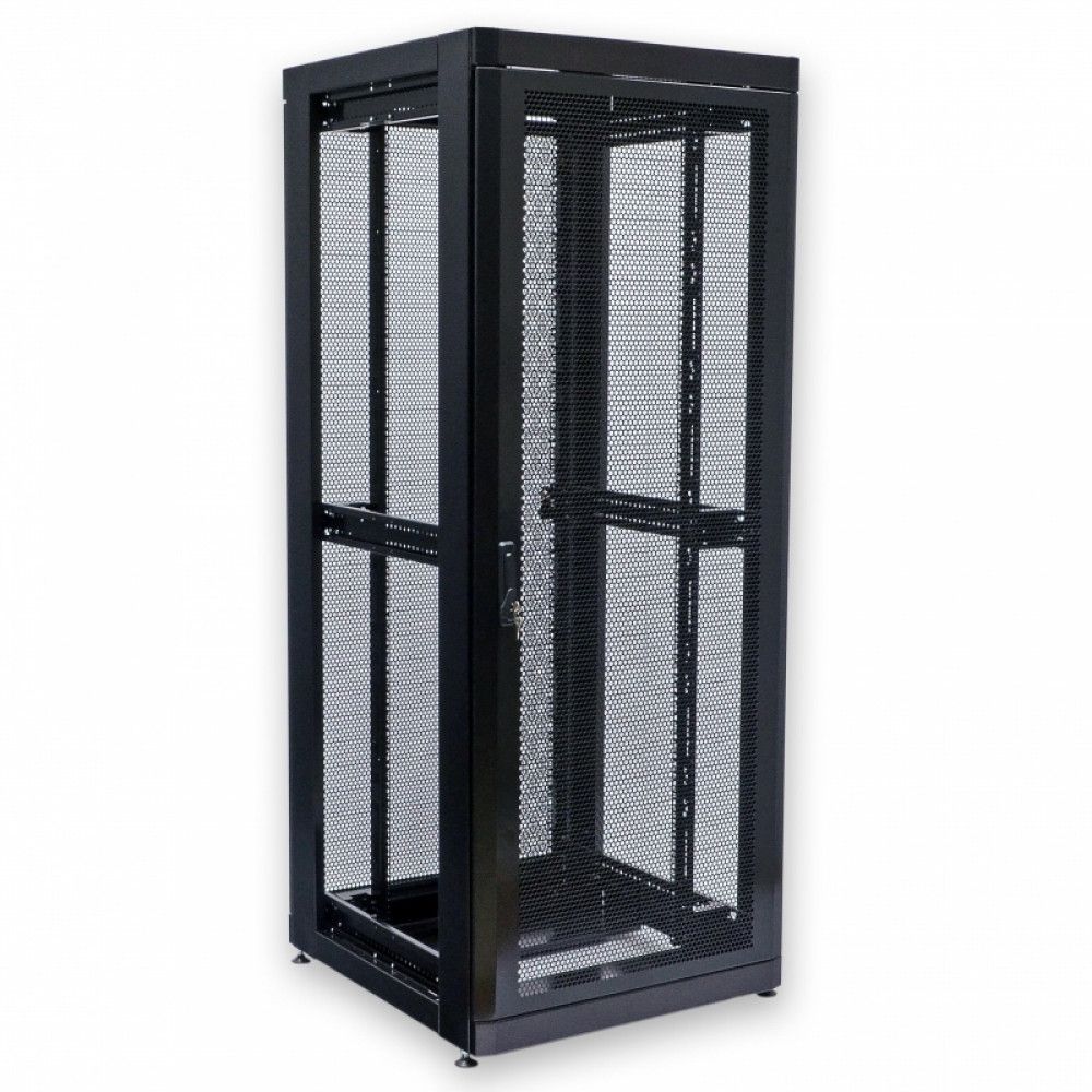 Серверна шафа з перфорованими дверима (66%) для розміщення електронного та/або електротехнічного обладнання. Робоча висота: 42U. Товщина металу деталей корпусу: 1 - 2 мм. Максимальне навантаження: 700 кг. Стандарт: 19". Максимальна робоча глибина для встановлення обладнання: 865 мм. Колір чорний.