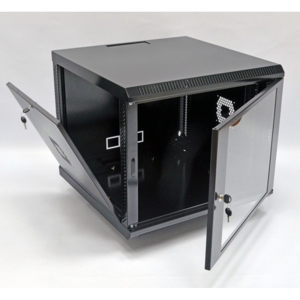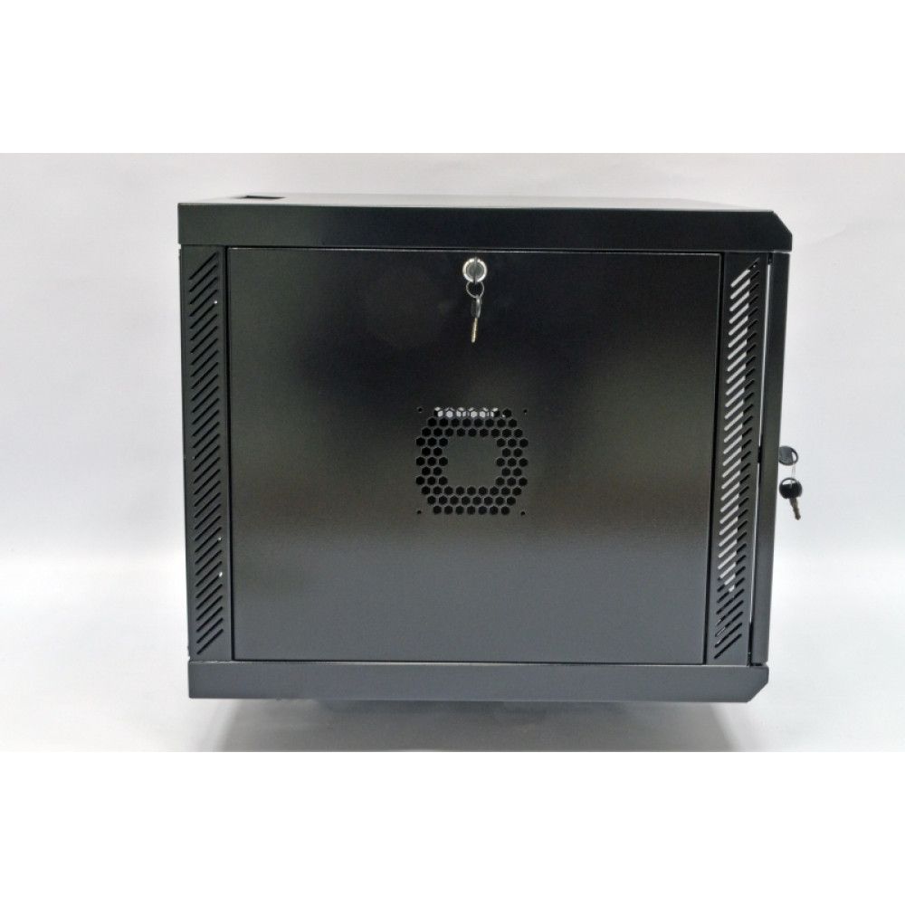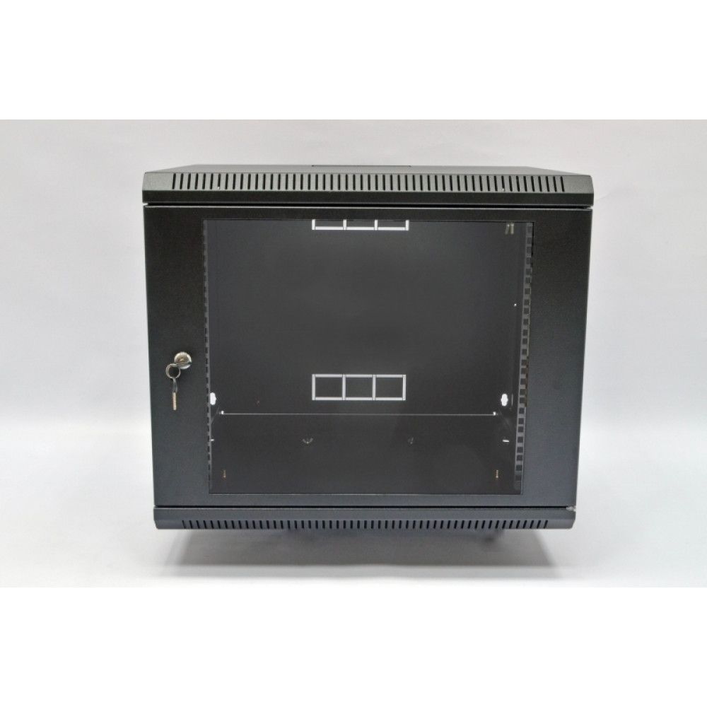 Серверна шафа для розміщення електронного та/або електротехнічного обладнання. Робоча висота: 9U. Товщина металу деталей корпусу: 1 - 1.5 мм. Максимальне навантаження: 80 кг. Стандарт: 19". Максимальна робоча глибина для встановлення обладнання: 560 мм. Колір чорний.