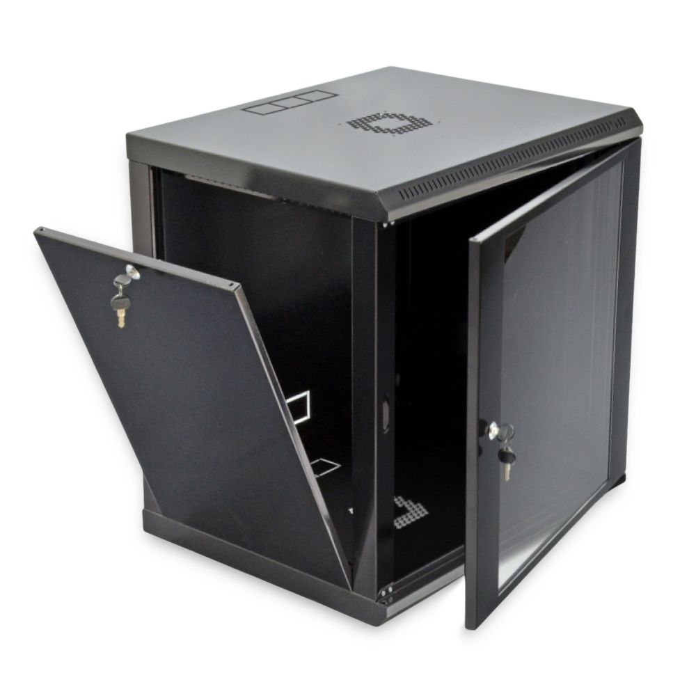Шафа серверна SteelNet 12U 600 x 600 для мережевого обладнання (скло, чорний)
