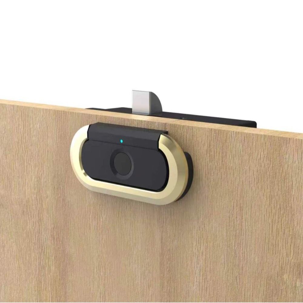 Меблевий smart-замок з доступом по відбитку пальця. Пам'ять відбитків: 20. Може використовуватися як ручка для відкриття дверцят. Живлення: 3 лужні батареї типу AAA, роз'єм USB Type C для резервного живлення. LED індикатор стану. Матеріал: металевий зовнішній блок, внутрішній блок у пластиковому корпусі. Товщина дверей: від 14 мм. Розміри: зовнішній блок 82 x 38 x 8 мм, замикаючий механізм 60 x 86 x 22 мм