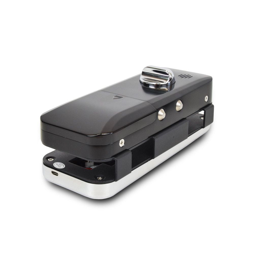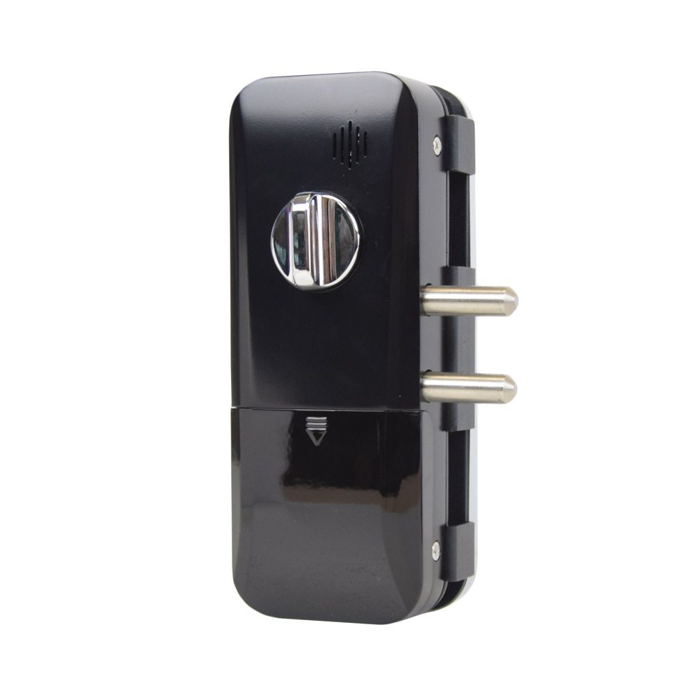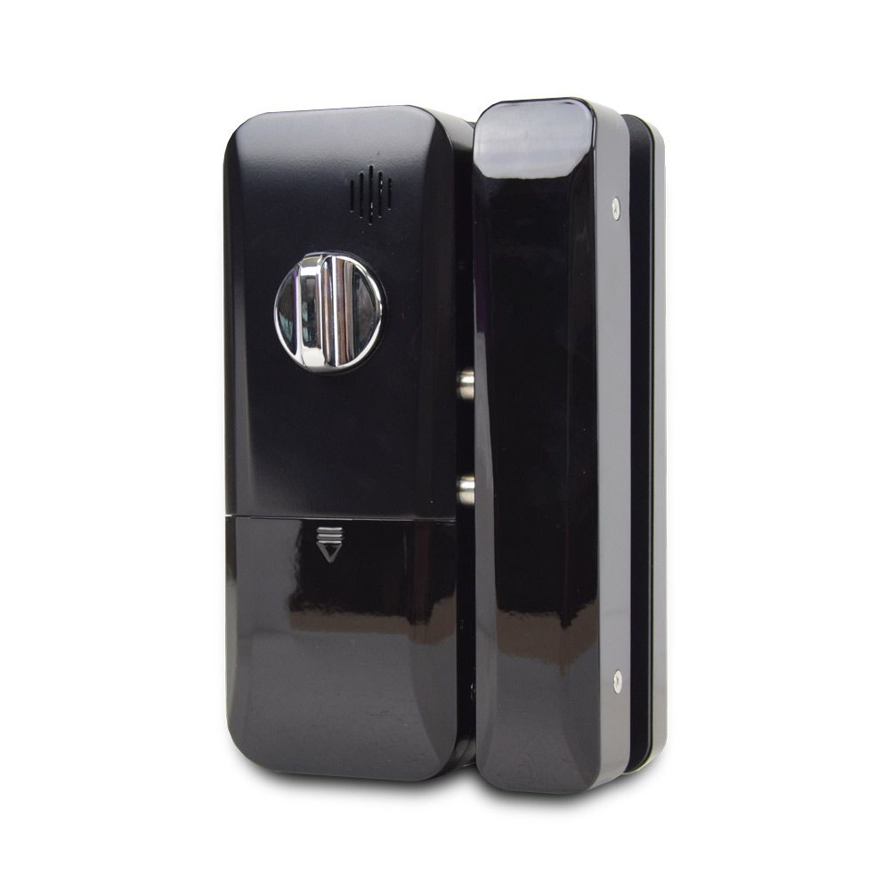 Smart замок для скляних дверей зі зчитувачем відбитка пальця і безконтактних карт Mifare. Кількість користувачів 100. Живлення 4*AA батареї (не входять до комплекту). Товщина дверей 10-12 мм. Розміри: 131х200х75 мм