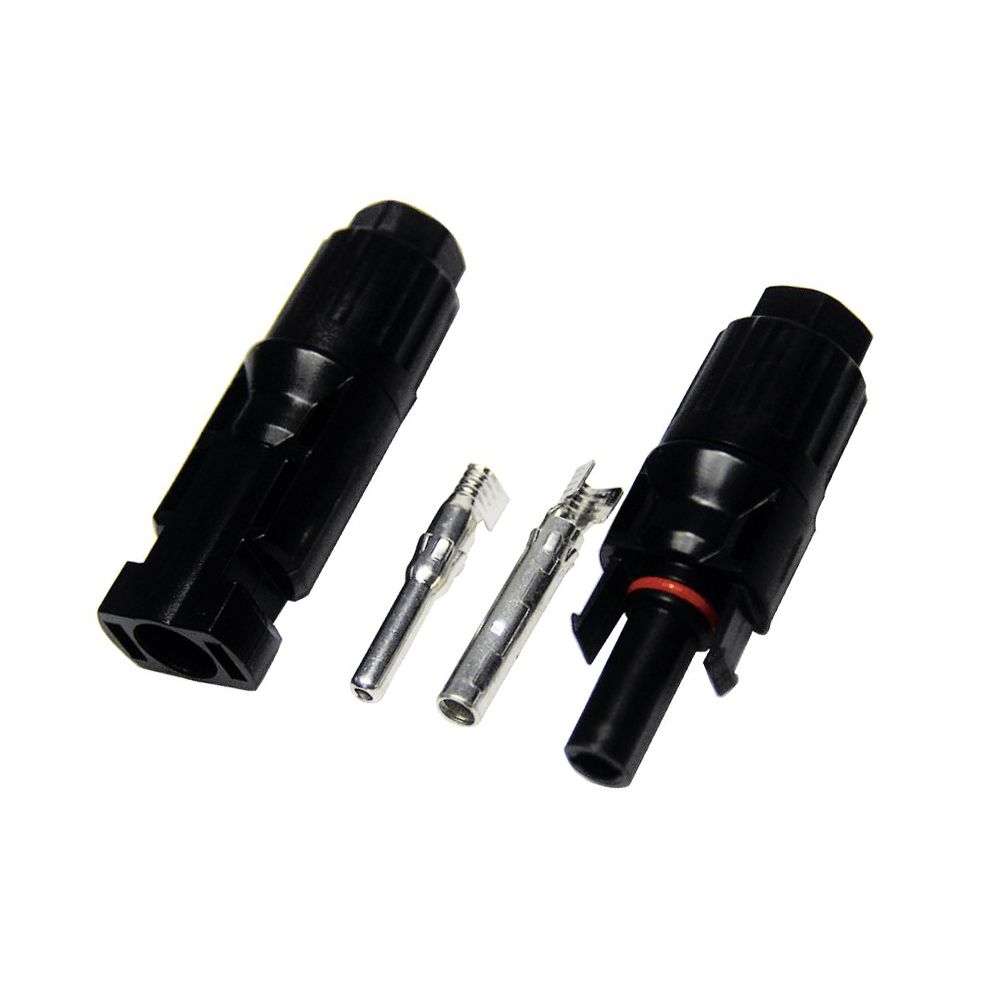 Комплект роз'ємів LP-MC4 (2 шт) призначений для з'єднання кабелів сонячних панелей. Тип: MC4. Корпус конектора: ABS пластик. Діаметр: 4 мм². Максимальна напруга: 1000 В. Максимальний струм: 30 А. Опір з'єднання: < 0.5 МОм. Ступінь безпеки: 2. Ступінь захисту: IP65